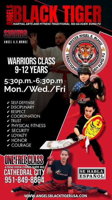 Unlock your child’s inner strength with Warrior Kung Fu — a vibrant, action-packed journey into Chinese martial arts. Our classes focus on: - Punching, blocking, and kicking with precision and confidence - Traditional forms (Dao or Kuen, kata) that build balance, focus, and memory - Weapons basics (safe, beginner-friendly) to understand balance and timing - Real-life self-defense skills that emphasize safety, awareness, and respect Why join Warrior Kung Fu? - Develop discipline, focus, and confidence both in class and at home - Learn self-control, teamwork, and how to stay safe in real-life scenarios - Grow strong, healthy, and resilient through fun, structured training - Channel energy into positive, powerful movement Class details - Ages: 9–13 - Schedule: Monday, Wednesday, Friday - Free trial class available — come learn this beautiful Chinese art and self-defense - Location: 67850 Vista Chino Suite 103, Cathedral City - What to bring: comfortable athletic wear, water bottle, and a positive attitude Our promise - A supportive, kid-friendly environment - Progressive instruction that matches each child’s pace - Emphasis on safety, respect, and character-building Ready to empower your son or daughter? Sign up for the free class and discover how their best weapon is their body—strength, balance, and confidence—tused through traditional Kung Fu training.